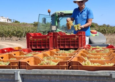 L’attività agricola si fonda su due pilastri: la viticoltura e l’allevamento. Dal 2020, il vigneto di Vermentino di Gallura Superiore DOCG ha iniziato a dare i suoi frutti, portando alla prima vendemmia nel 2023 con una produzione limitata ma di eccellenza. L’azienda alleva inoltre bovini di razza Limousine, garantendo una gestione etica e sostenibile dell’allevamento.